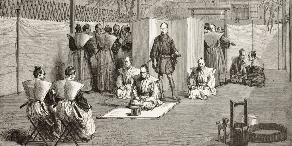 Seppuku, (Japanese: “self-disembowelment”) also called hara-kiri, also spelled harakiri, the honorable method of taking one’s own life practiced by men of the samurai (military) class in feudal Japan. The word hara-kiri (literally, “belly-cutting”), though widely known to foreigners, is rarely used by Japanese, who prefer the term seppuku (written in Japanese with the same two Chinese characters but in reverse order).